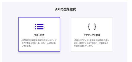 - APIの型を選択 →リスト形式