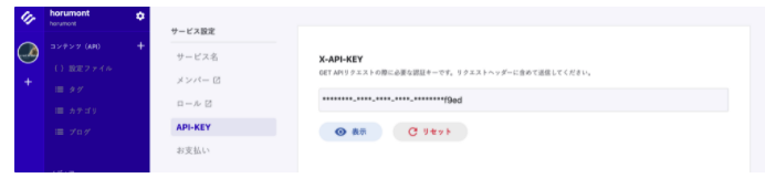 - microCMS管理画面からapikeyを確認してコピー・ペースト
